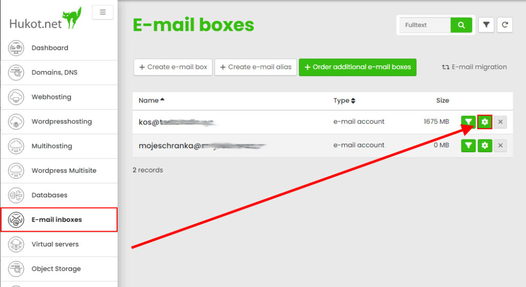 Log in to the hosting services administration using your access credentials. After logging in, go to the Email Mailboxes tab. From the displayed email accounts, select the email account for which you want to change the password and click the edit button.