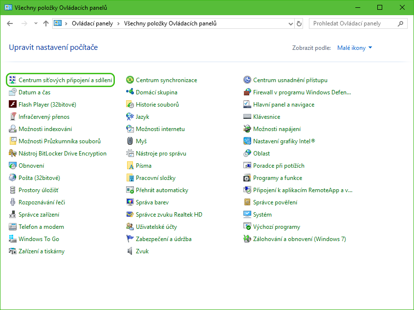 In the list of options, select Network Connections and Sharing Center.