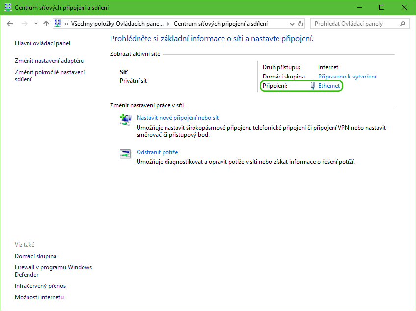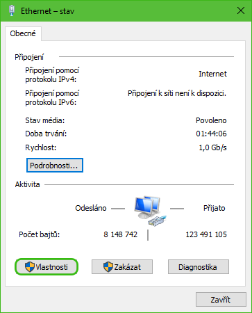 In the list of active networks, select the network through which you connect to the Internet.