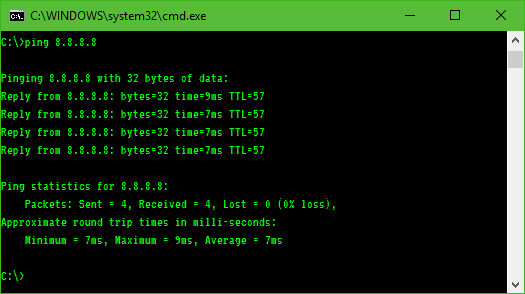 In our case, we will ping the address 8.8.8.8