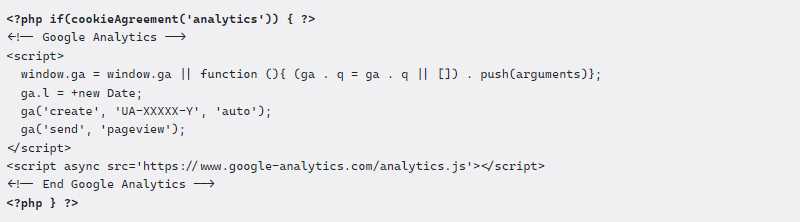 To run a script after consent is given, you need to modify the current calls of individual scripts as shown in the following example:
