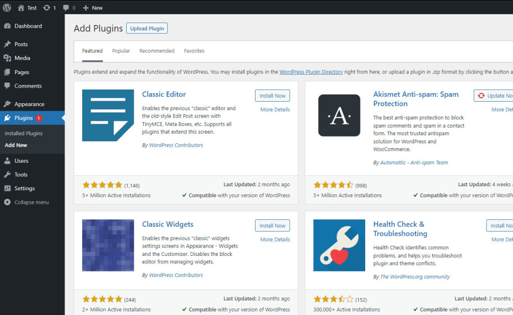 You can start exploring new plugins by clicking the "Add New" button next to the "Plugins" heading at the top left (as seen in the screenshot above). You can view plugins as you like, search for inspiration, and even install them right away. You can install as many as you want, but in general, for the stability of WordPress, it's better to have only the plugins that you truly need installed (and activated).