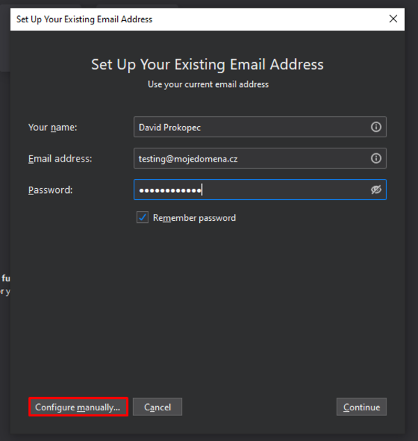 "Your name" - name, which will display when sending any e-mail. E. g.: "john.mulberry@securitynet.cz John Mulberry".