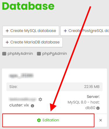 Login to the hosting services administration at admin.hukot.net and go to edit your database.