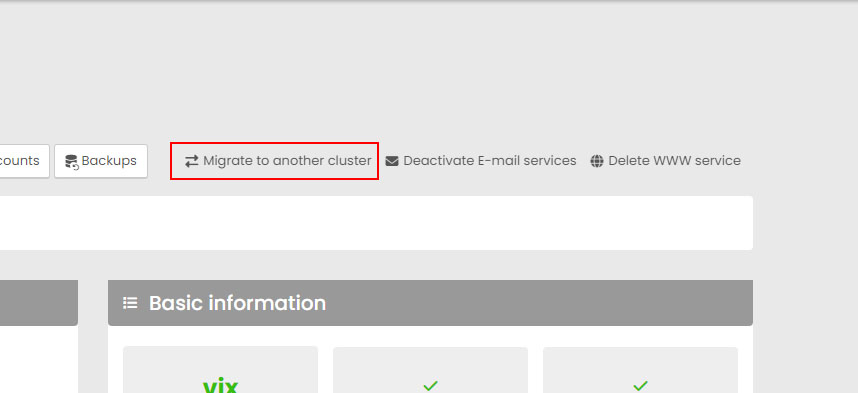 In the popup window, select the new cluster to which you want to migrate the existing hosting.