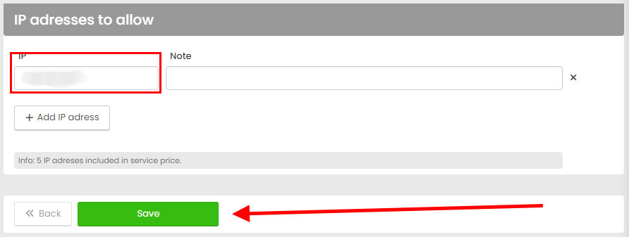 Enter the IP addresses that will have access to the storage and click on "Save."