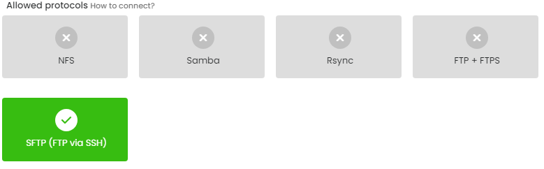 In the list of allowed protocols, enable SFTP (FTP over SSH).