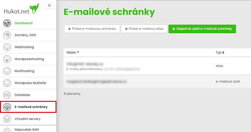 Přihlásíme se do administraci hostingových služeb admin.hukot.net pomocí svého e-mailového účtu a hesla.