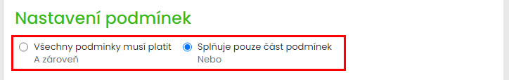 Vyberte nastavení podmínek.