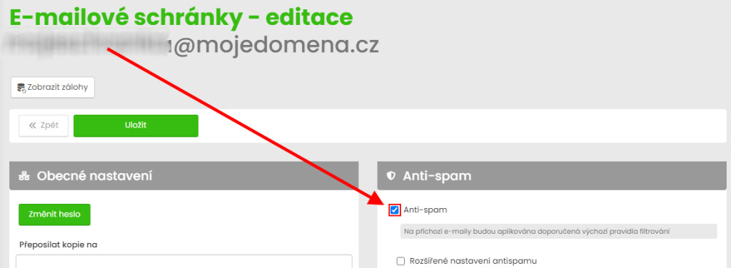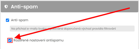 Pokud chcete upravit základní nastavení, zaškrtněte "Rozšířené nastavení antispamu."