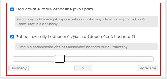 E-maily vyhodnocené jako spam nebudou zahozeny, ale označeny jako spam |