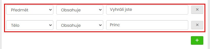 Součástí administrativního rozhraní máte možnost nastavit filtry pro e-mailové schránky. Pomocí těchto filtrů můžete na základě obsahu e-mailu provést automatizovanou akci. Součástí nastavení e-mailové schránky je také možnost zapnutí opatření proti nevyžádané poště (spam) a zablokování odesílatele nebo domény.