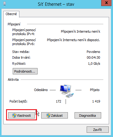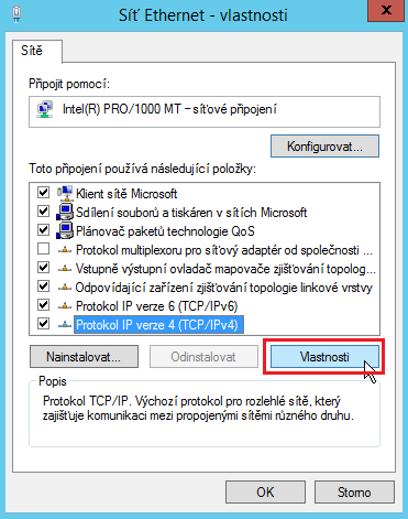 Vybereme Protokol IP verze 4 (TCP/IPv4) > Vlastnosti.