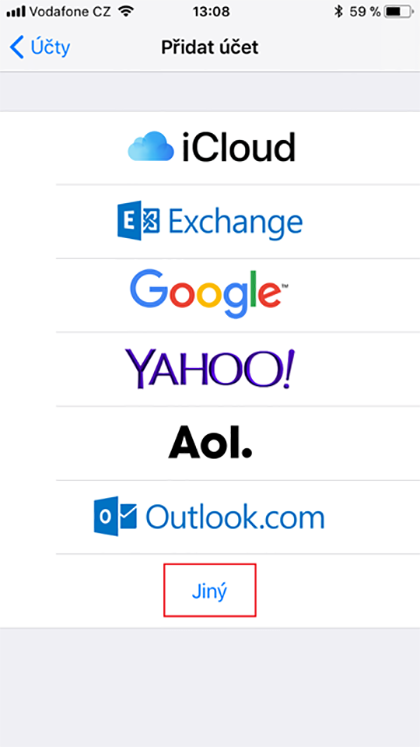 V mobilním zařízení vybereme Nastavení > Pošta > Účty > Přidat účet