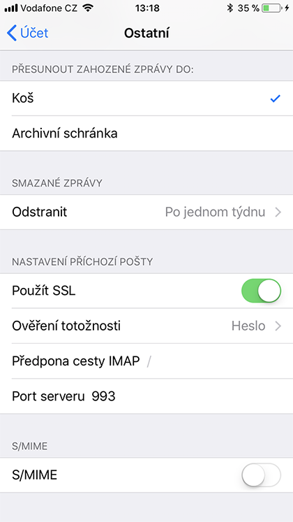 Jak nastavit e-mailovou schránku v poštovním klientovi Apple Mail na iPhone - IMAP