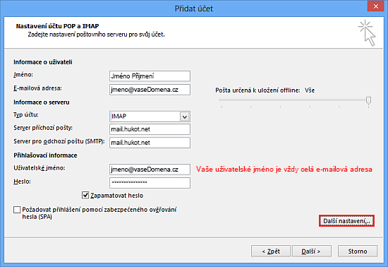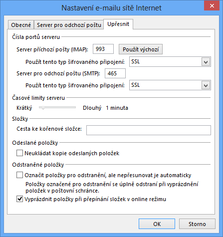 Jak nastavit e-mailovou schránku v poštovním klientovi Outlook 2013, Outlook 2016 - IMAP