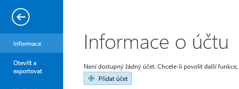 V levém horním rohu klikneme na soubor, dále na tlačítko Informace a Přidat účet.