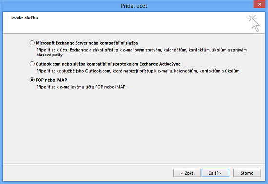 Z následujících možností vybereme POP nebo IMAP.