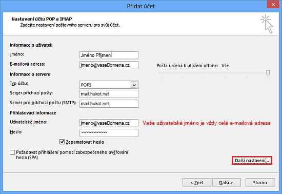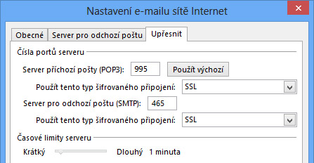 Jak nastavit e-mailovou schránku v poštovním klientovi Outlook 2013, Outlook 2016 - POP3