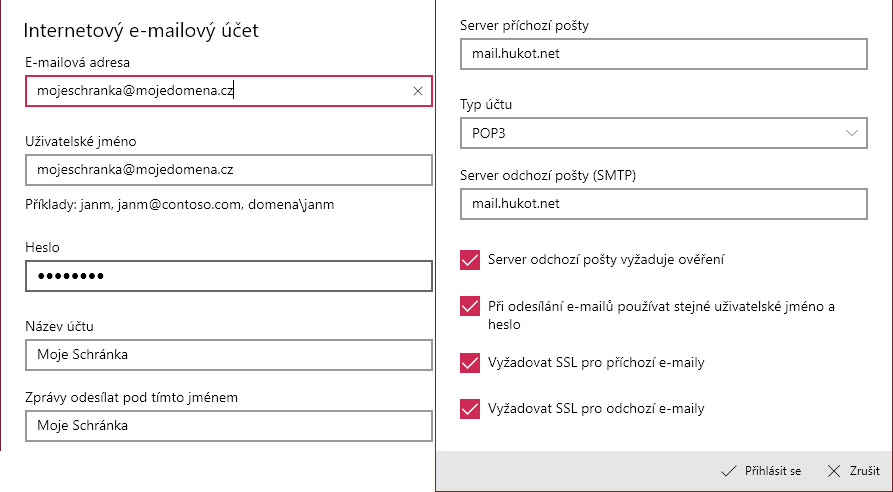 Server příchozí pošty: mail.hukot.net