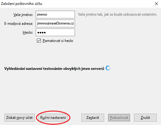 Tyto údaje nám budou zajišťovat připojení k e-mailovému serveru.