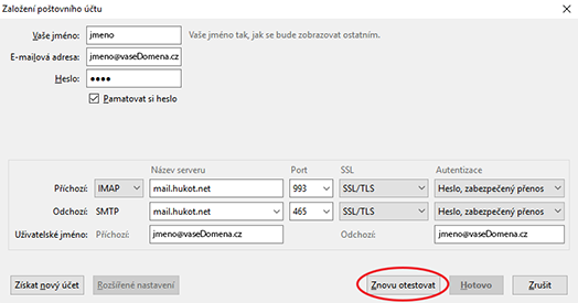 Jak nastavit e-mailovou schránku v poštovním klientovi Thunderbird - IMAP