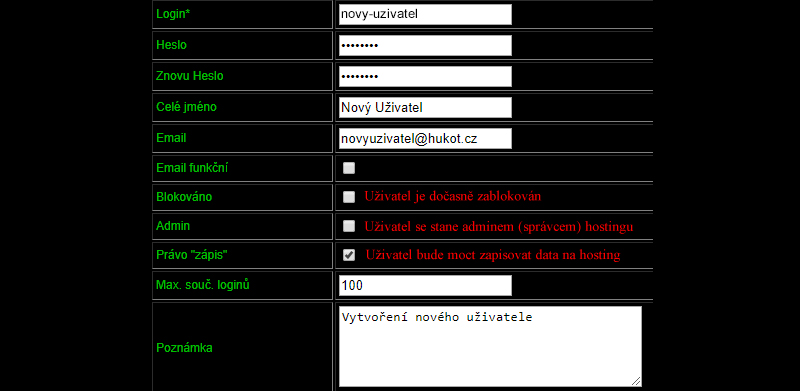 Tlačítkem Přidat záznam můžeme přidat nového uživatele.