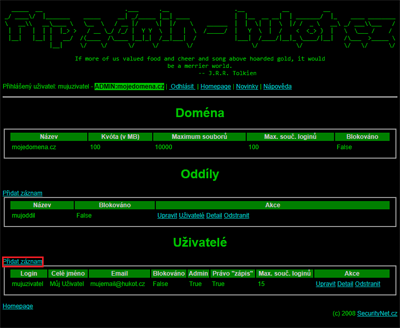Zajímá nás kategorie Uživatelé a tlačítko Přidat záznam.