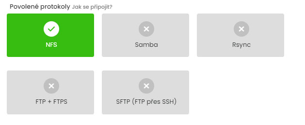 V seznamu povolených protokolů povolíme NFS.