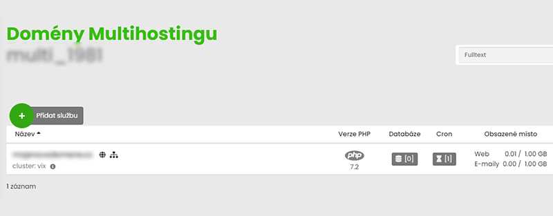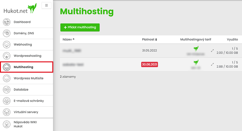 Přejdeme na záložku Multihosting